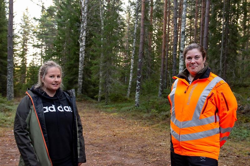 Emma och Karin som berättar om hur det är att studera skoglig utbildning i poddavsnittet.