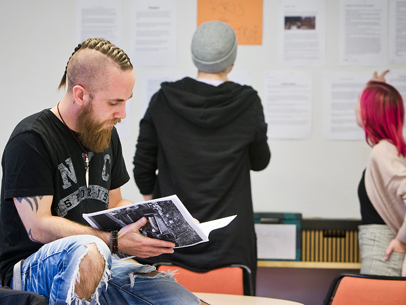 Halva tiden på folkhögskola – du läser minst två valfria gymnasiekurser, antingen för behörighet eller repetition.