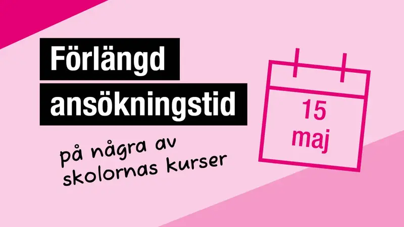Än är det inte försent! Det finns fortfarande platser kvar till flera av höstens utbildningar att söka. Den nya ansökningstiden är fram till den 15 maj. Vi har löpande antagning så skicka in en ansökan redan idag för att säkra din plats.