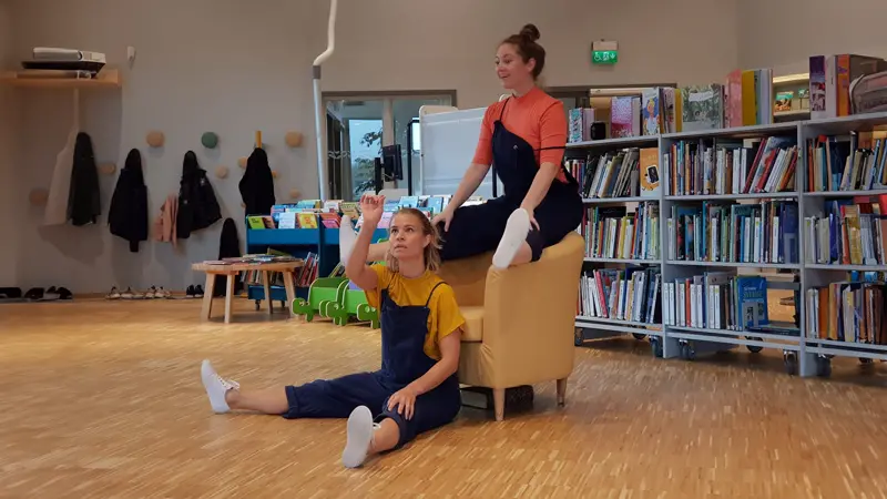 Barnen blir själva en del av föreställningen då de bjuds med i rörelser och eget kreativt skapande. Helheten blir en upplevelse för flera sinnen.