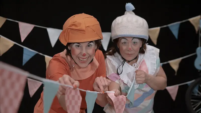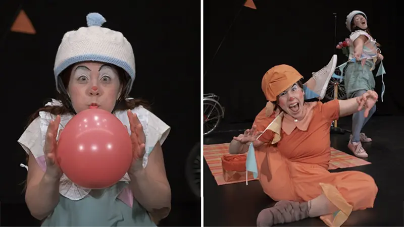 Här blandas teater och akrobatik när två nyfikna clowner möter publiken och bjuder in till en fest dom sent kommer glömma!