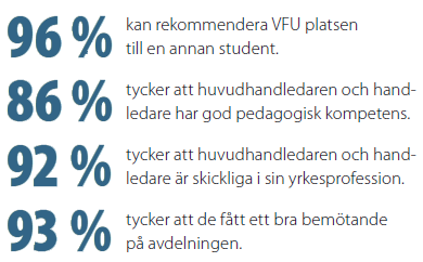 Resultat av en utvärdering av verksamhetsförlagd utbildning (VFU) där 1 200 har svarat.