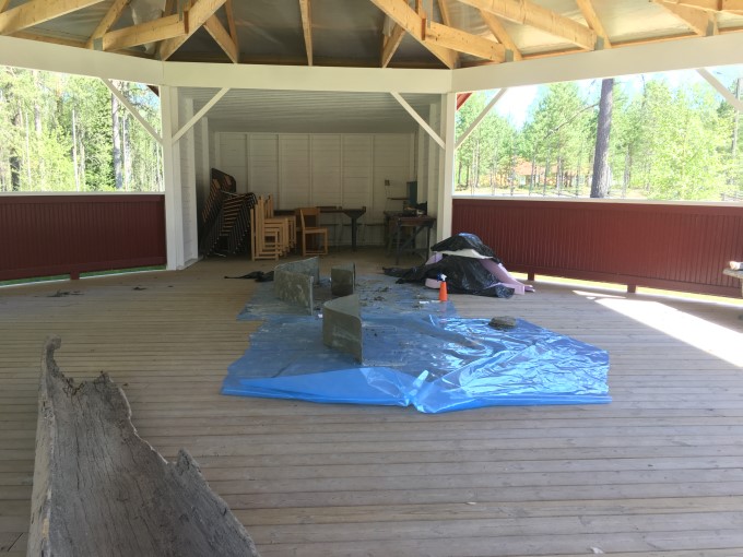 Arbete i danspaviljong. Gjutningar var en del i produktion av det platsspecifika verket Marklyft. Foto Sabina Ostermark