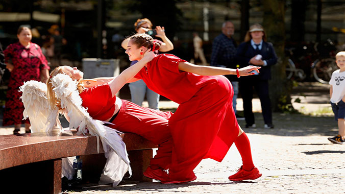 Bilder från föreställningen Hesa Fredrik som Värmlands Unga Dansare gjorde tillsammans med Drömsommarjobbet Dans i juli 2024. Foto: Linn Malmén.
