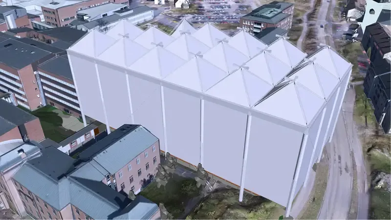Visualisering av väderskydd över Mottagningshuset. Bild: Skanska