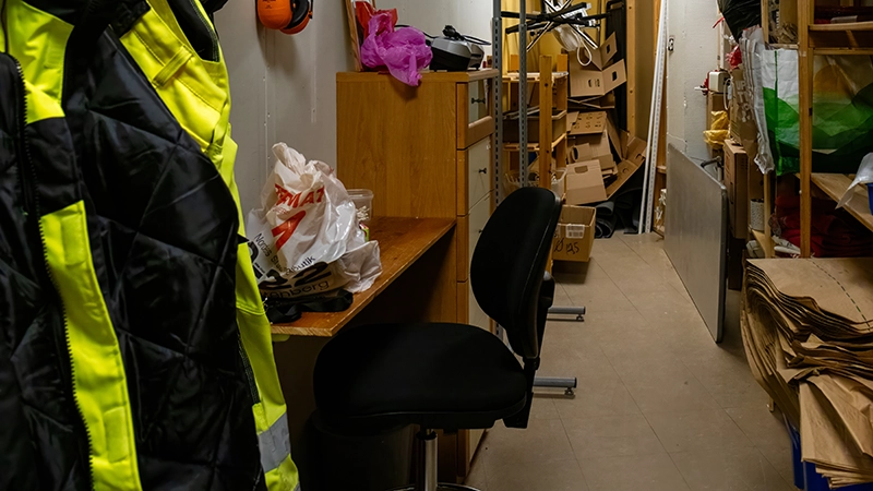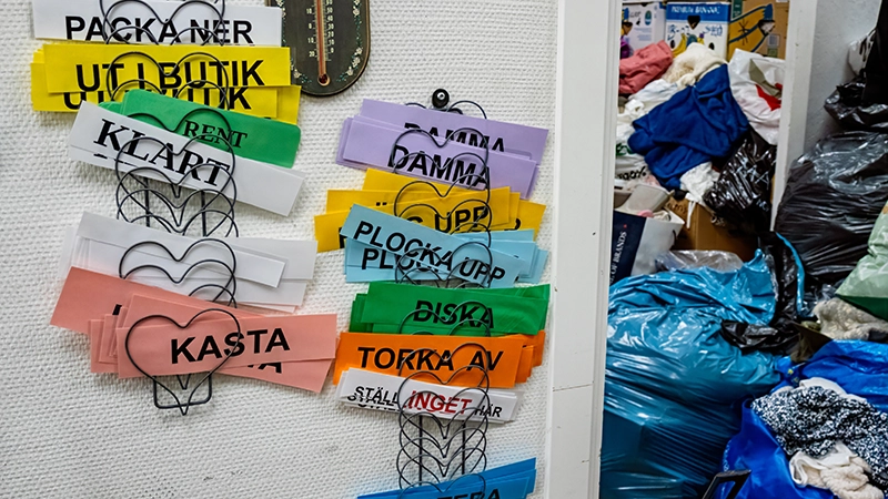 I personalutrymmet finns flera rum för olika arbetsuppgifter. 'Här finns något som passar alla', säger Gun, mitt i en hög av kläder som ska sorteras.