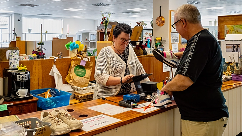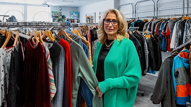 Styrelseordföranden Anna tittar runt i butiken. Hennes roll handlar mycket om strategiskt arbete, kontakter med myndigheter och kommuner och så vidare, men hon är också en trygg punkt för alla på JösseNavet.