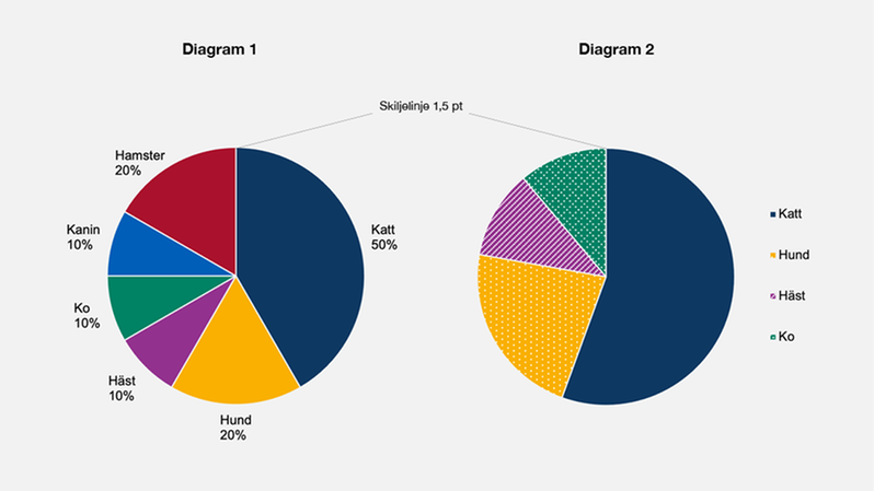 - mönster kan användas på samma sätt som i stapeldiagram för att skilja kategorierna åt.