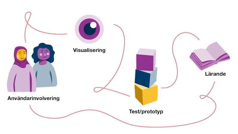 Det som driver arbetet framåt är en iterativ process, det vill säga en process som bygger på kontinuerligt lärande och omformulerande av utgångspunkter och utmaningar.