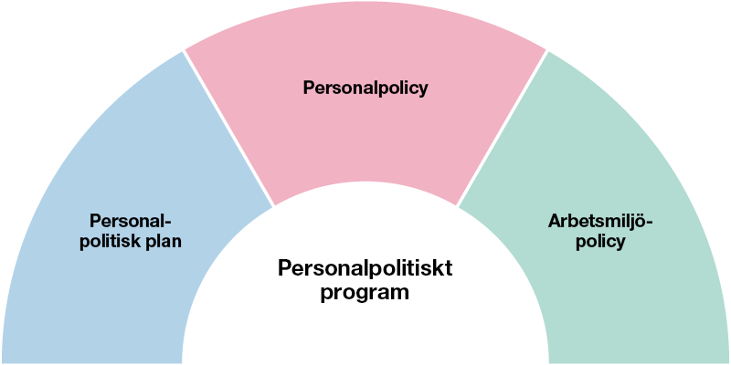 Modell över det personalpolitiska programmet som innehåller personalpolitisk plan, personalpolicy och arbetsmiljöpolicy.
