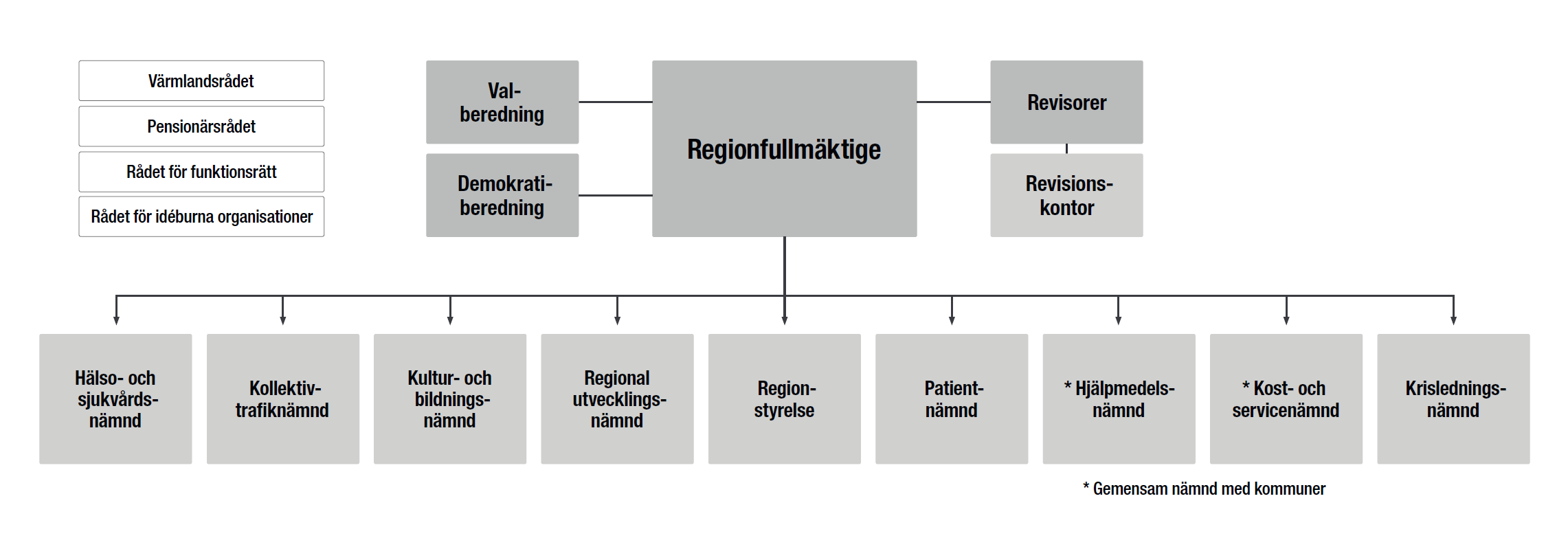 Formerna för Region Värmlands verksamhet regleras ytterst av lagar som regeringsformen, kommunallagen och förvaltningslagen. Härutöver finns verksamhetsspecifika lagar och förordningar, exempelvis hälso- och sjukvårdslagen, patientsäkerhetslagen och lag om kollektivtrafik, som reglerar arbetet för de olika verksamheterna.