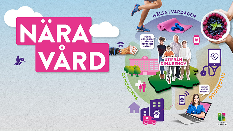 Kronobergs sätt att se på nära vård i en bild. Att skapa tillgänglighet och förutsättningar för en sömlös och samordnad vård.