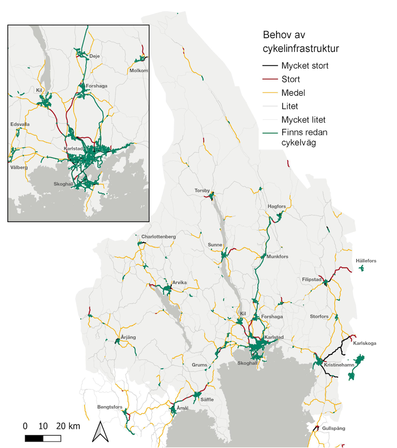 Som regional planupprättare ansvarar Region Värmland för planering av cykelvägar längs det statliga regionala vägnätet samt för fördelning av statlig medfinansiering till kommuner för cykelvägar på det kommunala vägnätet. De medel som funnits till cykelinfrastruktur via länsplanen i Värmland har till största delen använts till statlig medfinansiering som kommunerna sökt för kommunala cykelinvesteringar. Eftersom potentialen för cykelresor är störst i tätorter där avstånden är korta, är det viktigt att cykelinfrastrukturen utvecklas där och kommunerna har en viktig roll. Att rikta statliga medel mot infrastruktur i tätorter är därför rimligt. Samtidigt innebär utvecklingen av nya eldrivna cyklar att det med enkelhet går att cykla längre sträckor och då kan det vara intressant att omfördela de statliga medlen från länsplanen till regionala och statliga cykelvägars fördel. Dialog om detta har förts med kommunerna.