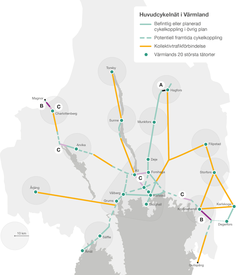 - Landsbygder och städer är bättre tillsammans. Region Värmland arbetar för att förbättra tillgängligheten mellan landsbygd och städer genom att satsa på regionala cykelkopplingar.