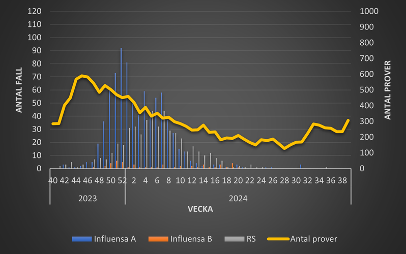 Här presenteras statistik över luftvägsvirus - influensa, RS och