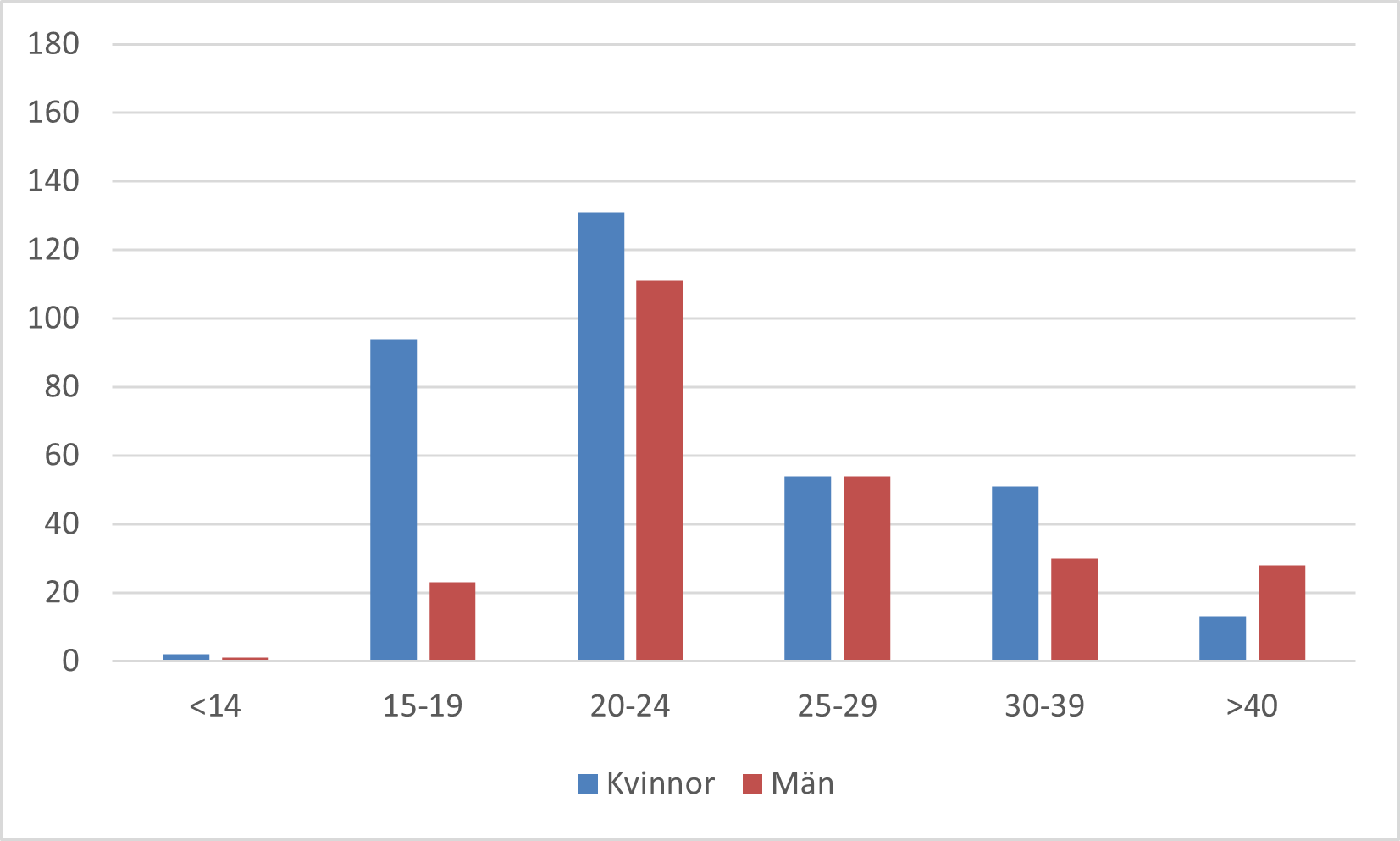 Antal fall av klamydia i Värmland, ålders- och könsfördelning för 2024