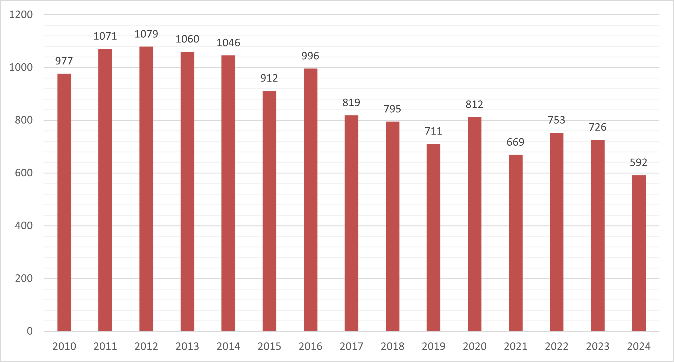 Antal fall av klamydia i Värmland mellan 2010-2024