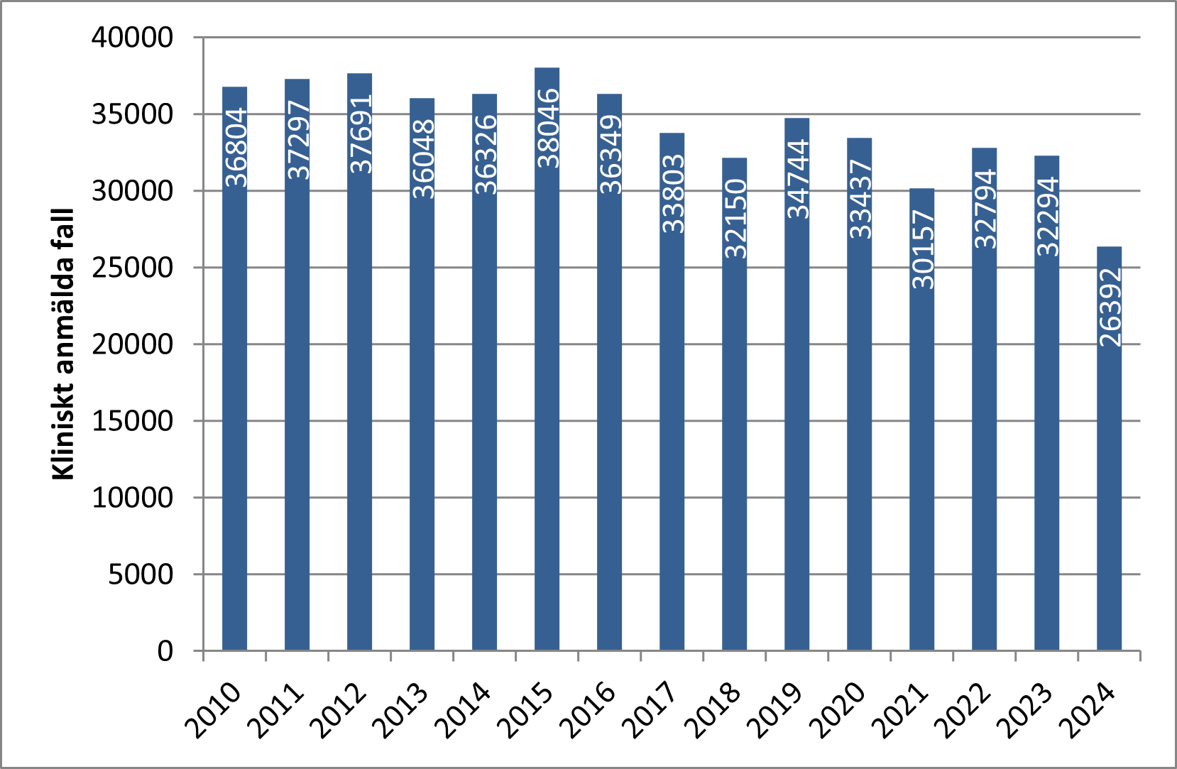 Antal fall av klamydia i Sverige mellan 2010-2024