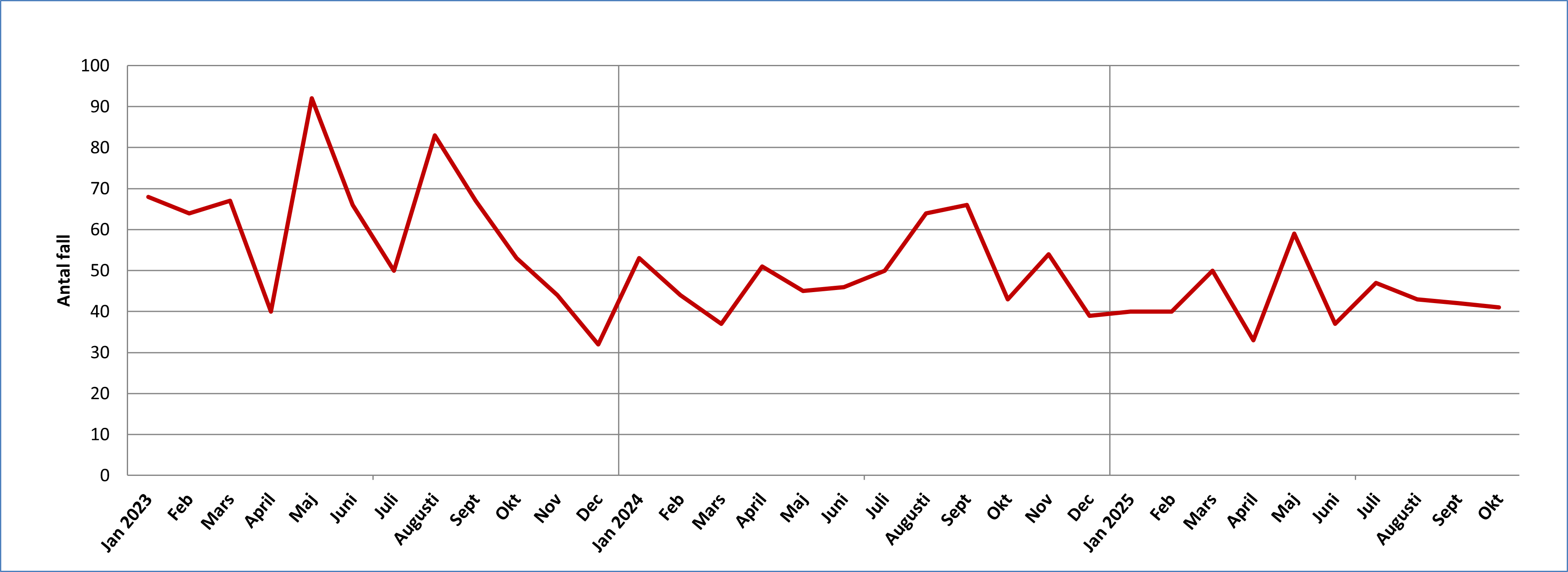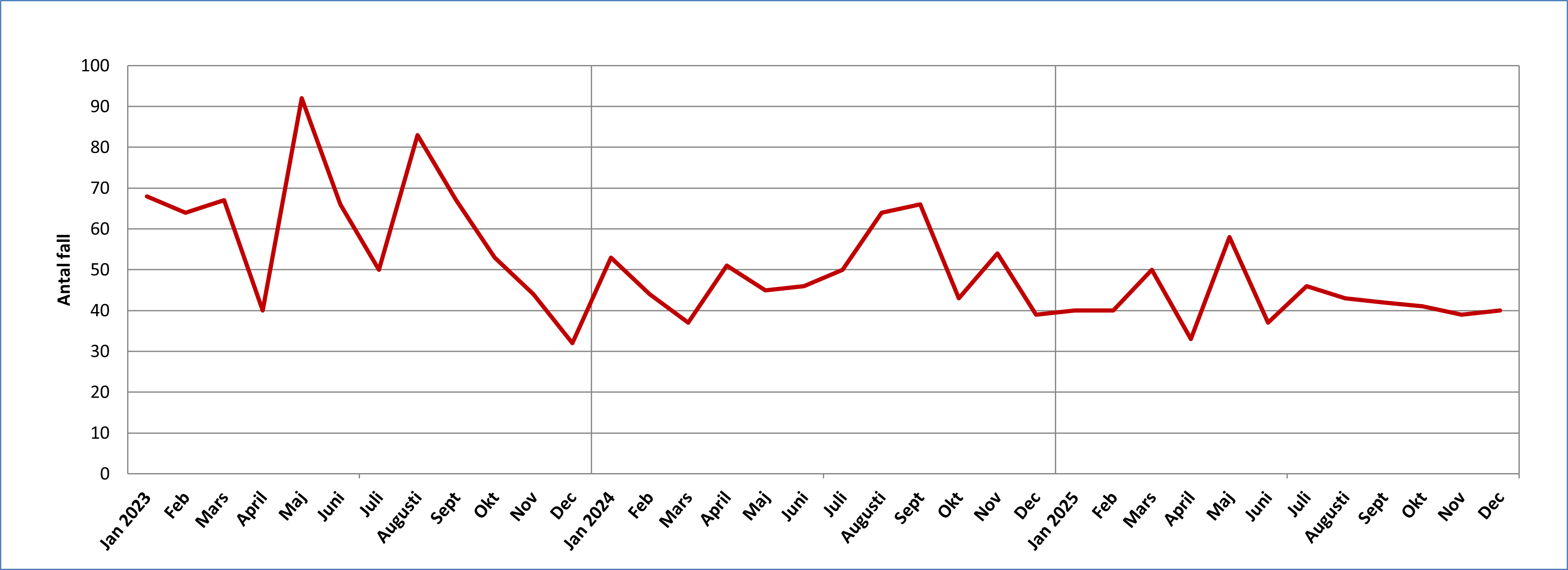 Antal fall av klamydia i Värmland per månad 2023-2025