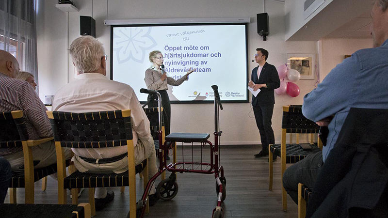 Över 50 personer deltog då Region Värmland och Karlstads kommun gemensamt bjöd in till invigning av Äldrevårdsteam Karlstad och till ett öppet möte om hjärtsjukdom. Deltog gjorde även Riksförbundet HjärtLung. Vid träffen fick deltagarna tips om hur man kan må bättre och leva ett aktivt liv med hjärtsjukdom och också information om det stöd som finns att få från region och kommun.