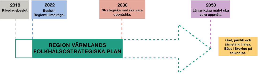 Grundläggande för allt folkhälsoarbete i Sverige är alla människors lika värde. Det innebär att alla ska ges förutsättningar för en god hälsa på lika villkor. Den folkhälsostrategiska planen ska tydliggöra Region Värmlands folkhälsostrategiska uppdrag. Den ska också fungera som inspiration och vägledning för systematiskt och långsiktigt folkhälsoarbete i hela länet – mot det långsiktiga målet God jämlik och jämställd hälsa och bäst i Sverige på folkhälsa.
