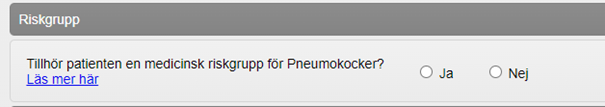 Från och med 1 december 2022 kommer det i MittVaccin att dyka upp en fråga om patienten tillhör en medicinsk riskgrupp i samband med vaccination mot pneumokocker. Man måste som vaccinatör välja om patienten är i riskgrupp för pneumokocker eller ej. Detta kryssas i vid både vanlig vaccination och snabbvaccinering. Frågan kommer även upp vid ordination av vaccin mot pneumokocker.