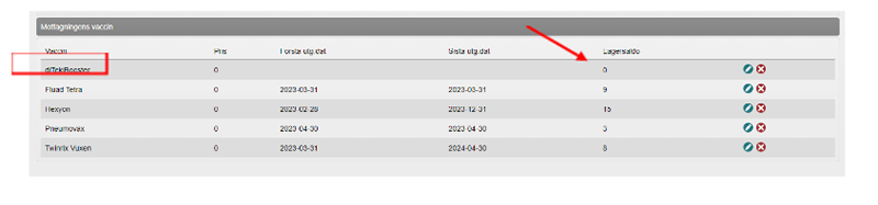 I nuläget kommer det dock fortfarande stå 0 i kolumnen lagersaldo i listan mottagningens vaccin. Leverantören tittar på en lösning där det ska framgå även i denna kolumn att inte lagersaldo är 0.