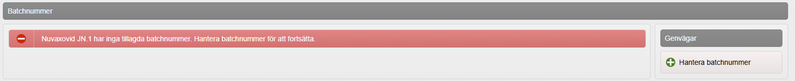 Klicka på Lägg till. Därefter kan aktuell batch läggas till i vaccinationsflödet.