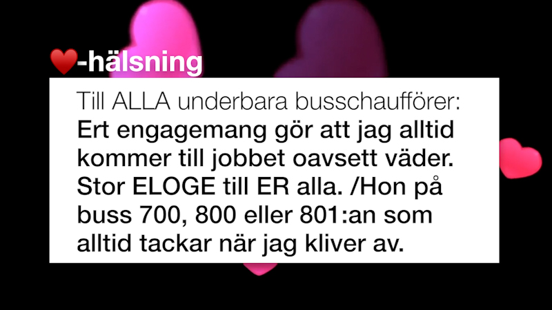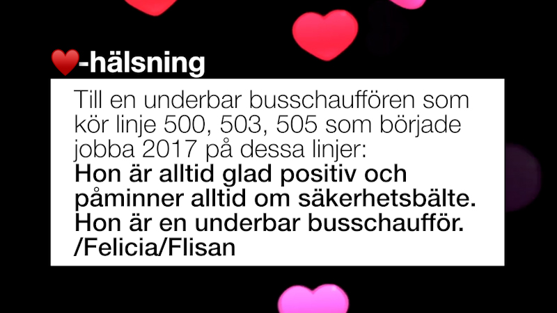 Idag är det många som får en extra värmande busstur mitt i vinterkylan. Kärlekshälsningar till nära och kära ombord kommer nämligen att rulla på alla tv-skärmar på Värmlandstrafiks bussar från Alla hjärtans dag till fredag.