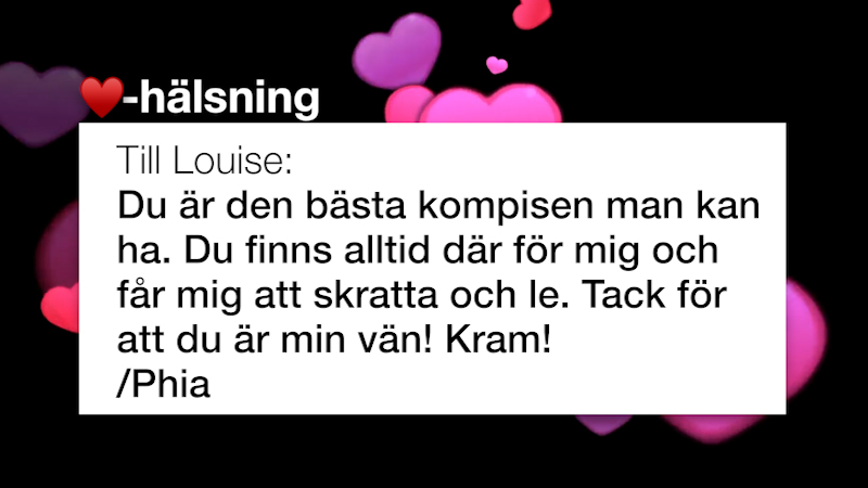 Tack alla ni som skickat in hälsningar till de ni tycker om! I år har hälsningarna slagit rekord. Över hundra kärleksmeddelanden har skickats in!