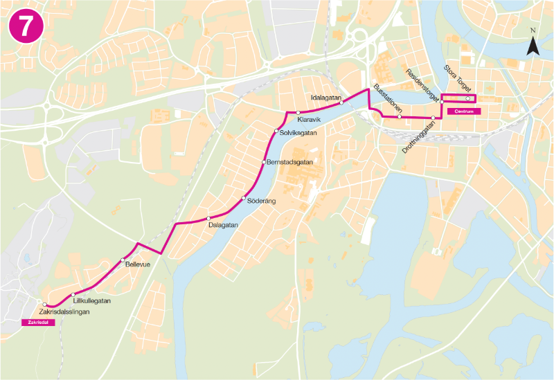 Linje 7. Centrum – Romstad – Bellevue – Zakrisdal