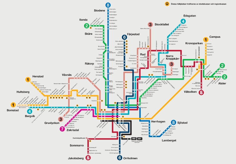 Nedan hittar du en länk till kartor över alla busslinjer i stadstrafiken i Karlstad.