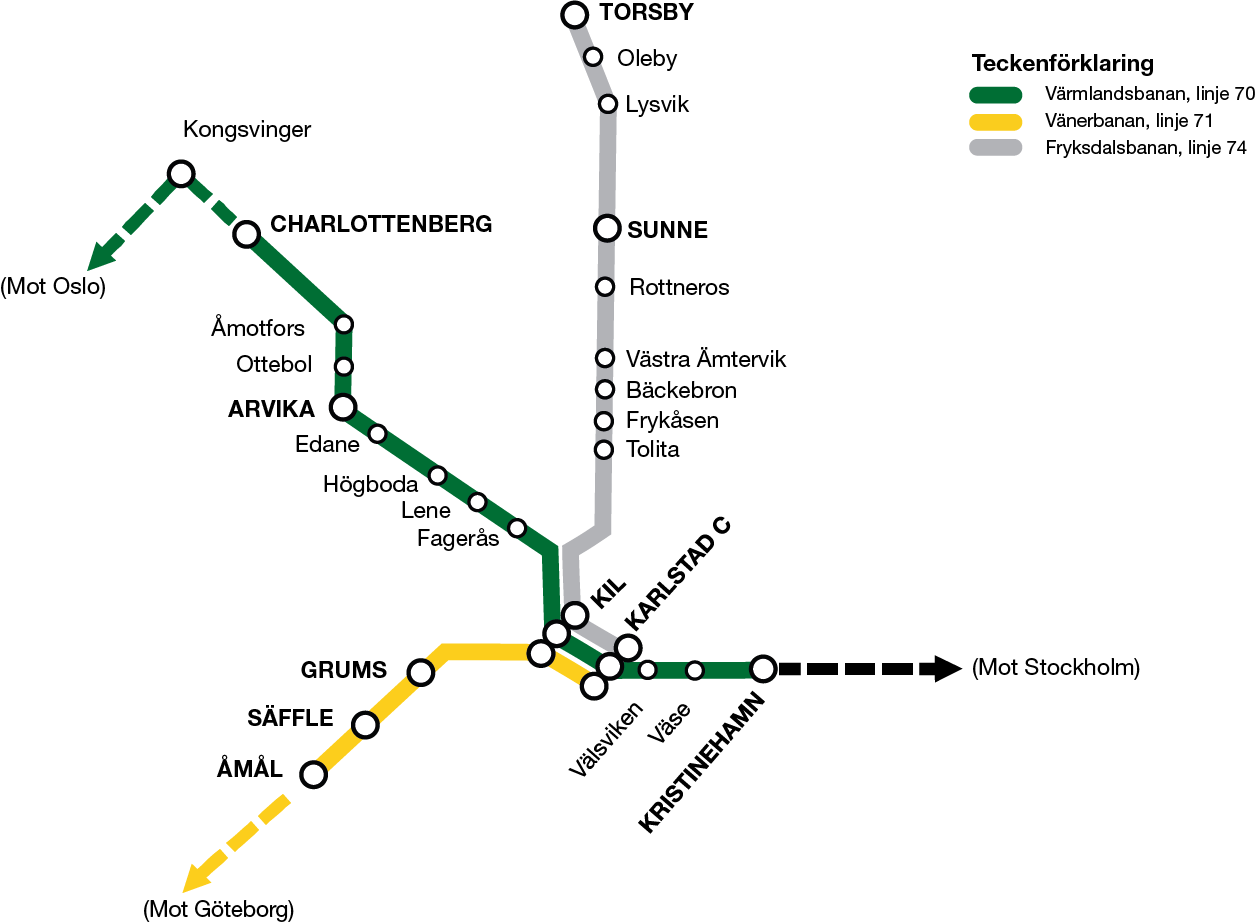 - Linjekarta västra Värmland (pdf) pdf, 139 kB.