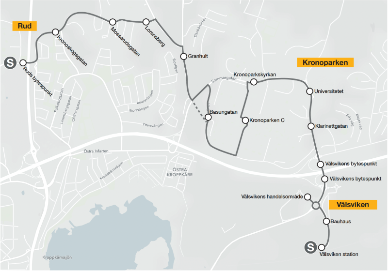 Karlstadsstråket är byggt för att göra det enklare att resa kollektivt och hållbart i Karlstad. I stråket kör vår S-linje, som knyter samman många av de hållplatser där flest reser idag, alltså Centralsjukhuset, Stora torget, Rud, Kronoparken och Karlstads universitet.
