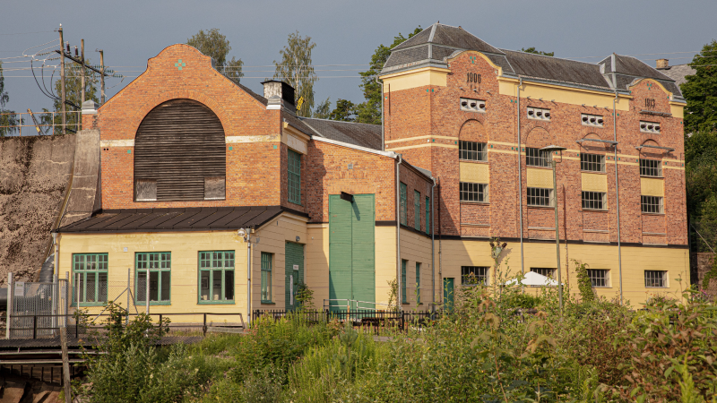 Ståtlig industrilokal från tidigt 1900-tal som förvandlats till en kulturell mötesplats där den historiska interiören samspelar med de konstnärliga uttrycken.