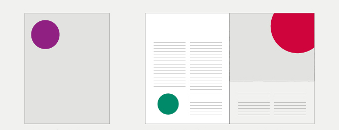Det grafiska elementet ligger i 80 procent färgton i bakgrundsfärgen eller som 15 procent opacitet i vit.