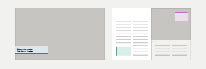 Även skogsstjärnans sträng används som del av ett grafiskt element. Tillsammans med en platta i en nyans av strängfärgen skapar den användbara textrutor, namnskyltar eller Powerpointavsnitt.