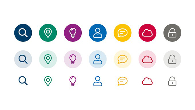 Våra ikoner är ytterligare ett verktyg som hjälper oss att skapa igenkänning i vårt kommunikationsarbete. Vi använder våra ikoner om vi vill illustrera ett komplext sammanhang, förtydliga en funktion eller stödja ett budskap.