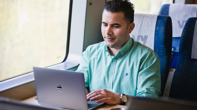 Material arbetspendling och tjänsteresorBilder och texter fria att använda för dig som företagskund i din kommunikation till medarbetare och kunder.